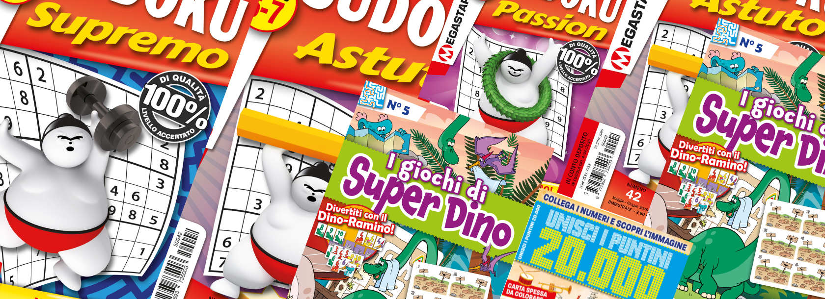 Megastar er et stærkt brand på det italienske marked, hvor vi tilbyder et alsidigt udvalg af magasiner, der er fulde af sudokuer og prik til prik-opgaver i alle sværhedsgrader.